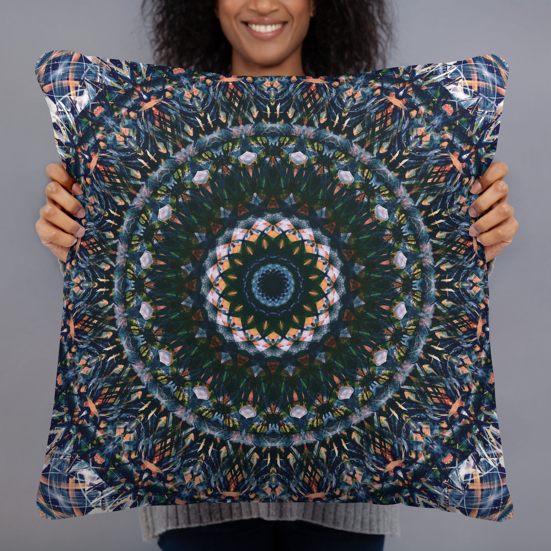 Dark Boho pillow designed by Elaine Van Wyk. Boho is short for Bohemian which is a design style that blends global influences with textures and patterns. It is inspired by the unconventional lifestyles of artists, travelers, writers, etc. This pillow combines the colors and global patterns of the bohemian movement. It is a comfortable, colorful, soft, machine washable addition to your living space.