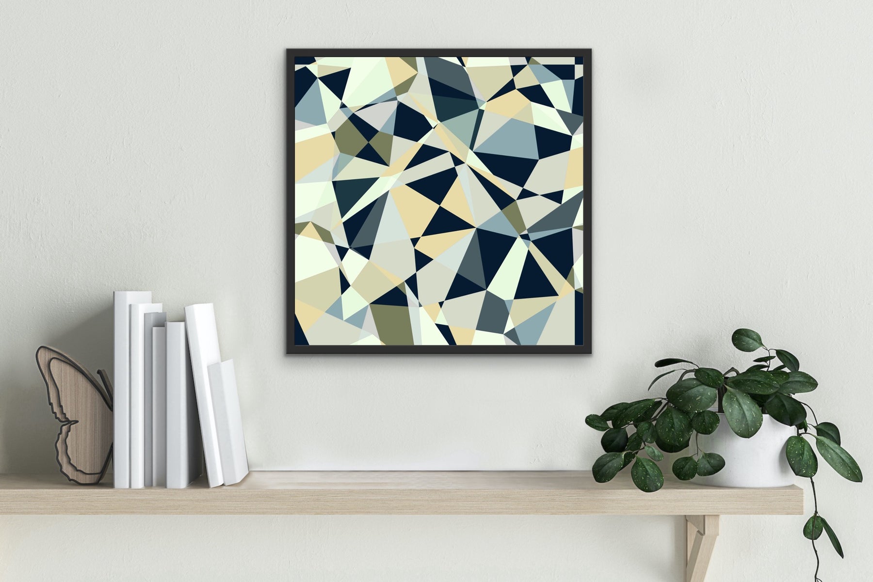 Blue geometric framed poster designed by Elaine Van Wyk. Add a modern look to your living or office space.