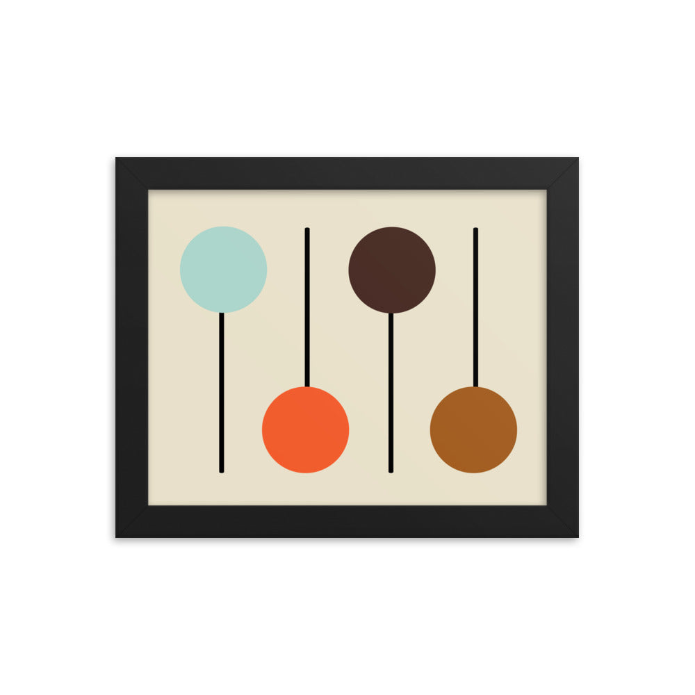 Mid Century Modern framed poster designed by Elaine Van Wyk.  Colors coordinate with all other products in the Atomic Cat Collection.